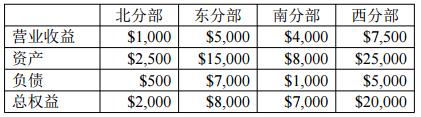 某公司设有四个地区分部。该公司的财务业绩摘要如下所示。