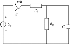 图示电路中,电容的初始能量为0,设开关S在t=0时刻闭合,此时电路发生过渡过程,那么,该过渡过程进程的时间常数为()。