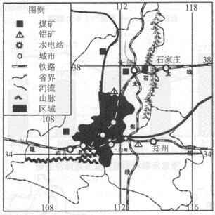 材料三由河南省三门峡市、山西省运城市、临汾市和陕西省渭南市,共同构成了晋陕豫三省边缘"黄河金三角区域"(材料一中阴影区域)。区域内煤炭开采生产能力约1亿吨,占全国的4%;氧化铝产能610万吨,约占全国的35%,是全国最大的炼铝业基地。材料四铝工业的能源消耗主要集中在矿山、冶炼和加工三大领域,其中尤以电解铝能耗为最。1吨铝锭综合交流电耗为14622度,相当于3.2吨标准煤;炼1吨铝综合能耗为9.6吨标准煤。因此,按9.6吨标准煤/吨铝计算,排放二氧化碳21.8吨、碳5.8吨。 试从资源、能源和交通运输方面简析"黄河金三角区域"成为全国最大的炼铝业基地的区位条件。