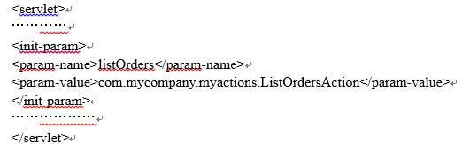 其中,省略号表示了一些代码。在Servlet中()把初始化参数listOrders的值:com.mycompany.myactions.ListOrdersAction取出来。