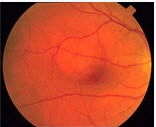 下列不符合中心性浆液性脉络膜视网膜病变(如图)的临床表现为()