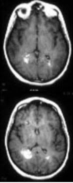 男性,40岁,因感冒半月后出现性情改变如欣快、暴躁和猜疑,以及EEG弥漫性慢波,以脑炎诊断住院20天,经治疗病情明显好转,准备3日后出院。但患者病情反复,MRI如图,应考虑( )