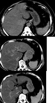 男,32岁,肥胖,常酗酒,肝肋下一横指,肝区轻微压痛,影像表现如图,应诊断为( )