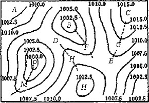 在日本南部附近洋面上,当西航船舶测得的真风向出现()时可断定该船舶是从气旋中心北侧通过。