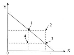 图是消费者的预算约束线,商品X和商品Y的消费量形成各种不同的消费组合,其中消费者现有收入不能购买到的消费组合是()