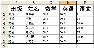 如图在第九行中插入函数计算三门学科的平均成绩正确的是()。