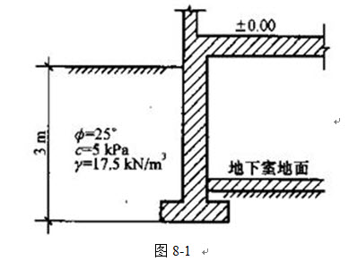 试计算图8-1所示地下室外墙上的土压力分布图、合力大小及其作用点位置。