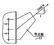 如图所示某节点,钢材为Q235B,焊条为E43系列,受斜向静拉力566kN,节点板与主构件用双面角焊缝连接,hf=8mm,无引弧板,f