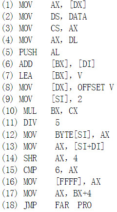 V是变量,指出下列错误的指令,说出错误原因,并给出合适的修改。