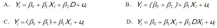 =居民收入,D=1代表城镇居民,D=0代表农村居民,则截距变动模型为()