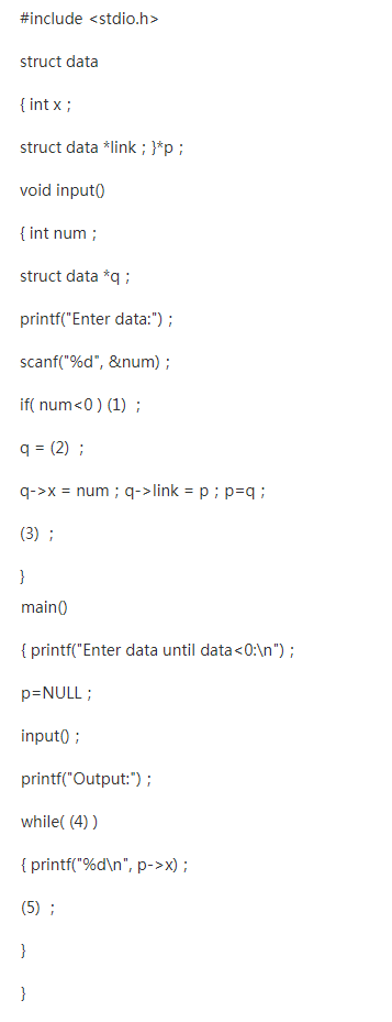 下面程序的功能是从键盘上顺序输入整数,直到输入的整数小于0时才停止输入。然后反序输出这些整数。请填空。