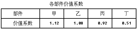 某企业价值工程工作人员对某产品分析,计算得到4个部件的价值系数如表所示,应选择作为价值工程分析对象的部件是:()