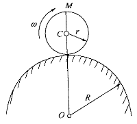 一半径为r的圆盘以匀角速w在半径为R的圆形曲面上作纯滚动(如图所示),则圆盘边缘上图示M点加速度a