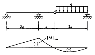 图示梁,采用加副梁的方法提高承载能力,若主梁和副梁材料相同,截面尺寸相同,则副梁的最佳长度有四种答案:()