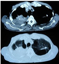 老年男性,反复咳嗽咳痰4~5年,近2个月来病情加重,痰量多,青、链霉素治疗效果欠佳。查体:背部双下肺野可闻及细湿啰音;WBC8.6×10/L,N0.76。
