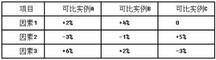 房地产状况中的三个因素对价格影响的重要程度是:因素1是因素3的4倍。因素2是因素3的1.67倍。房地产状况各因素的正值表示可比实例的状况优于估价对象的幅度,负值表示劣于估价对象状况的幅度。