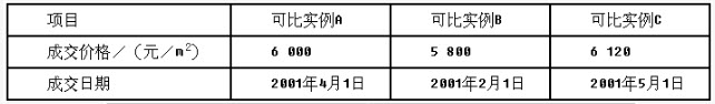 为评估写字楼2001年10月1日的正常市场价格,估价人员在附近地区调查选取了A、B、C三宗类似写字楼的交易实例作为可比实例,有关资料如下: (1)可比实例的成交价格与成交日期。