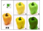 如图所示:当使用画笔工具用绿色在原图上进行绘画,画笔模式选择“叠加”模式,得到的结果将是:()