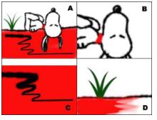 利用画笔选项的“动态形状”中的不同设置,绘制A图的插画,B、C、D都是A图的中的局部,以下说法正确的是:()