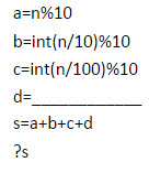 下列程序用来求一个四位整数n的各位数字之和s,在下划线处填写的语句可以为()。