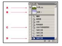 D:打开图像时,Photoshop一不定会建立一个与文件名相同的快照,如图A