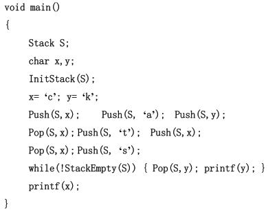 写出下列程序段的输出结果(栈的元素类型SElemType为char)。