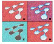 C:对在上面的图形的图层添加调节层,效果可以只作用于图形所在的图层,如D图所示