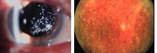 患者,男性,农民,右眼被谷粒弹伤,视物模糊1个月就诊,检查右眼视力O.5,轻度充血,角膜有黄白色病灶,污秽感,角膜轻微水肿,前房积脓1mm。