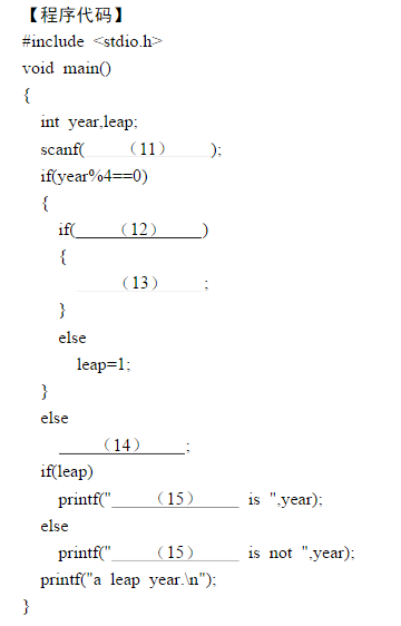 【程序说明】判定某一年year是否为闰年。闰年的判断方法:一个年份如果能被4整除但不能被100整除,或者能被400整除,则该年为闰年。