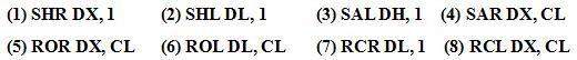 假定(DX)=1100100110111001B,CL=3,CF=1,试确定下列各条指令单独执行后DX的值。