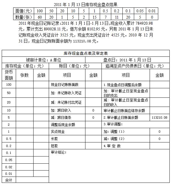 根据以下资料将《库存现金盘点表及审定表》的所有空白处填写完整。