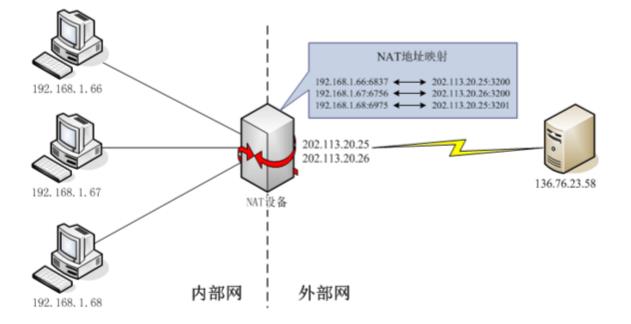 下图是一个局域网通过NAT设备连接Internet的示意图。如果当时主机192.168.1.66正在访问主136.76.23.58上的Web服务。