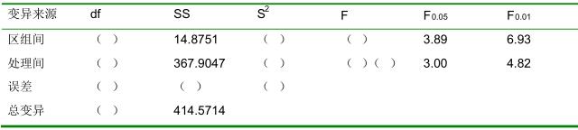 ,根据产量结果进行方差分析。请回答以下问题。 (1)补充方差分析表