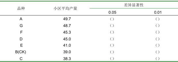 有一橡胶品比试验,有A、B、C、D、E、F、G,7个品种,其中B为对照,采用随机区组设计,3次重复,小区计产面积600m