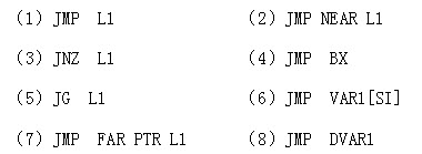 写出下列转移指令的寻址方式(设L1为标号,VAR1为字型变量,DVAR1为双字型变量)
