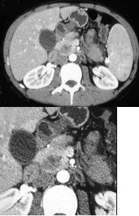 病例摘要:患者,女性,42岁,右上腹痛20天。体检:皮肤巩膜轻度黄染,右上腹隆起,肝右肋下4.5cm,结节感,质硬,B超提示:肝内弥漫低密度结节,门静脉直径1.4cm,脾大。HBsAg(+)。