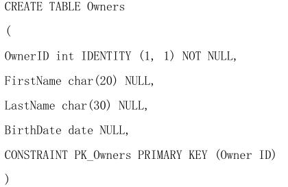 你是一保险公司的数据库开发者。该保险公司有一应用程序用来输入关于它的政策和其所有者的数据。该政策所有者信息存储在Owners表中。建该表的脚本如下所示: