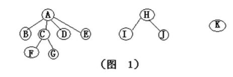 给出下面森林对应的二叉树及二叉树的后续序列。(图1)