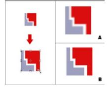 C:左侧的原图边缘清晰,但变换的时候Photoshop利用插值法重新生成了边缘像素,如果在“预置”中选择了“临近”的插值方法后,可以直接通过变换得到B图形