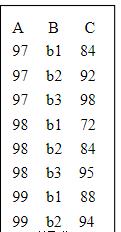 试用SQL语句实现下列操作: (1)按属性A分组,求出每组中在属性C上的最大值和最小值,且将它们置于视图RVE中。 (2)在视图RVE中查询属性A=‘98’的记录。