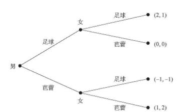 在下面的情侣博弈中,如果将第二个支付向量(0,0)改为(0,1.5),纳什均衡和逆向归纳法策略会有什么变化?改为(0,1)呢?