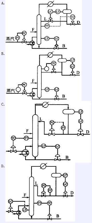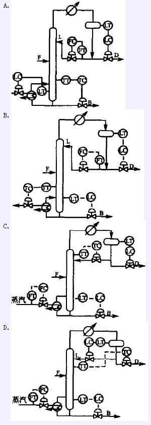 在过程设计控制方案比较时,产品苯乙烯与焦油分离的精馏塔按精馏塔段指标控制方案,采用直接是料,按精馏段指标调节馏出液量,回流罐液位控制回流量,该方案优点是环境温度变化时内回流量基本保持稳定,物料与能量平衡间关系最小,有利于精馏塔平衡操作。()与该控制方案接近。