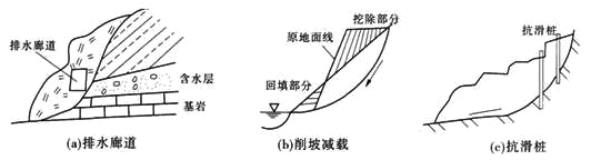 如图所示为边坡处理的常用方法的示意,图中边坡处理工作布置不是十分合理的是()。
