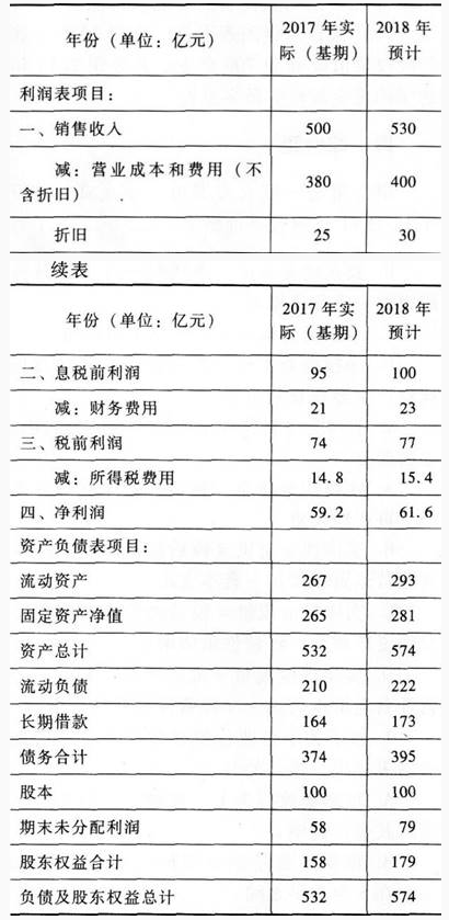 F公司是一家商业企业,主要从事商品批发业务,该公司2017年实际和2018年预计的主要财务数据如下: