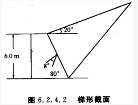某建筑边坡自然地面坡角为20°,地表无荷载,现采用梯形截面挡墙(如图6.2.4.2所示),挡墙高度为6.0m,边坡为黏性土,内聚力c=10kPa,内摩擦角φ=20°,重度为20kN/m3,墙背与填土间摩擦角为8°,墙背与水平面夹角为80°,假定墙背填土破裂时为直线型式,按《建筑边坡工程技术规范》(GB50330-2002)计算,主动土压力合力的标准值为()。