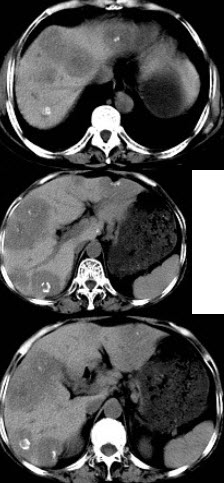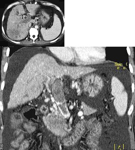 女,55岁,腹胀,肛门闭气,消瘦乏力,肝区疼痛,CT检查如图,最可能的诊断为( )