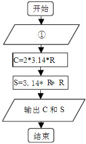 如图所示的流程图为计算圆周长和面积的算法。根据算法,流程图中①处的内容是()。