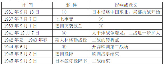 请把表格中标序号的内容补充完整。第二次世界大战的主要过程表: