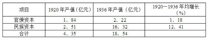 中国工业资本中官僚资本与民族资本的产值比较表: