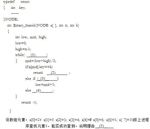 以下函数在a[0]到a[n-1]中,用折半查找算法查找关键字等于k的记录,查找成功返回该记录的下标,失败时返回-1,完成程序中的空格。